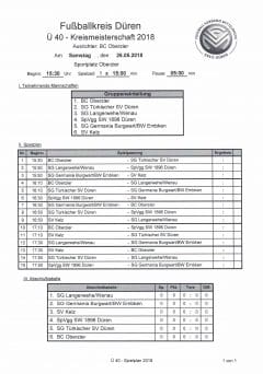 Am morgigen Samstag findet ab 15:30 Uhr die Ü-40 Kreismeisterschaft des Fussballkreises Düren auf der Anlage des BCO statt!